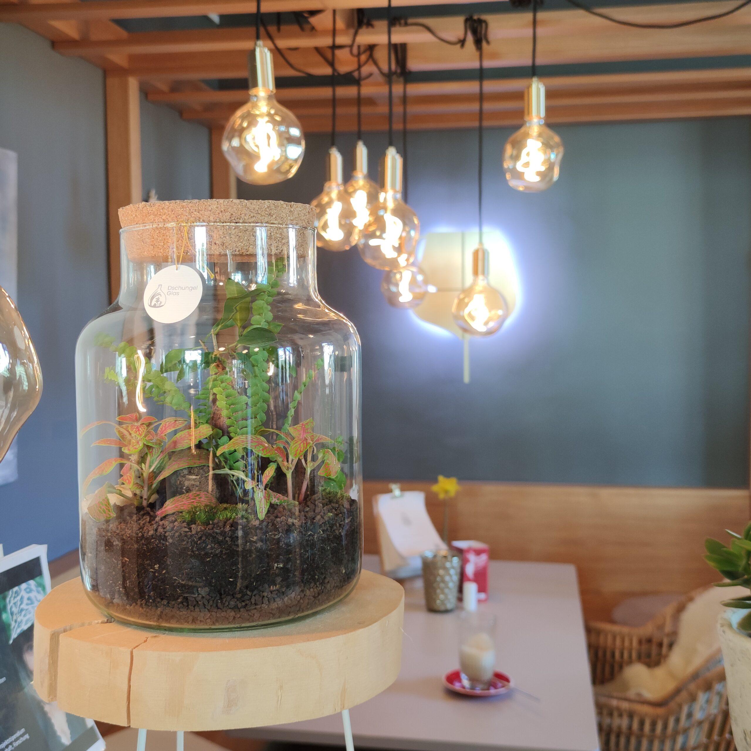 Du lernst, wie ein Mini-Ökosystem im Glas funktioniert und bepflanzt unter Anleitung Dein eigenes Biotop. Alles was Du brauchst, ist da. Diesmal steht ein kleineres Korkglas bereit.
